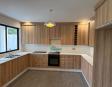 Kitchen with built-in stove and storage units