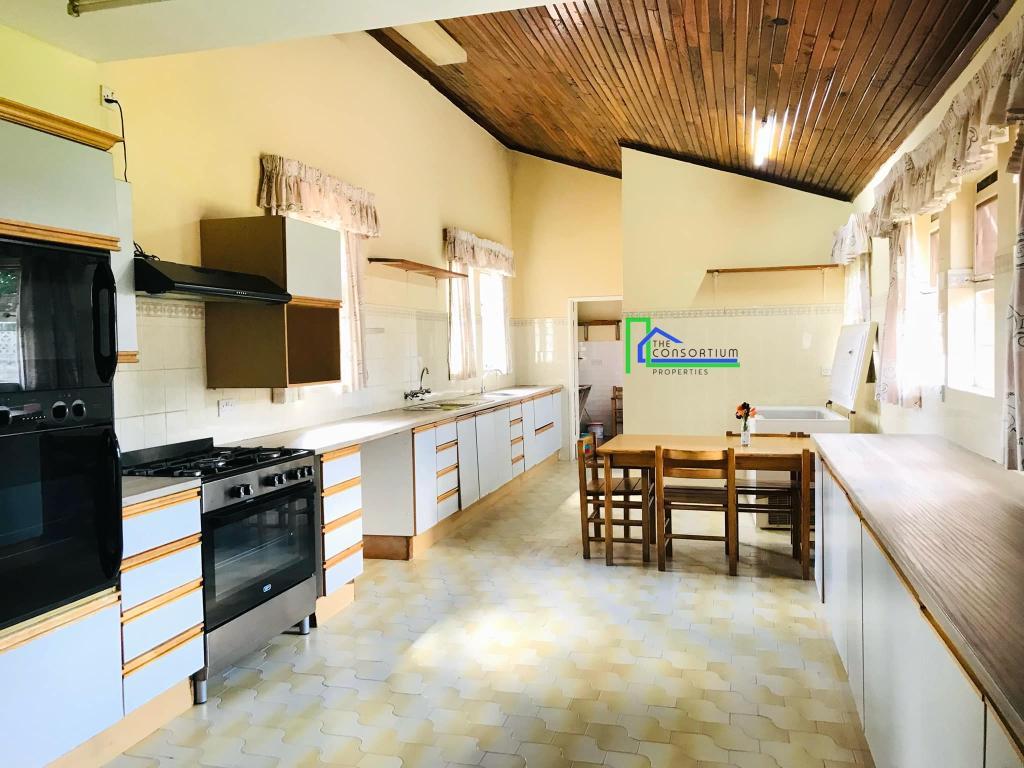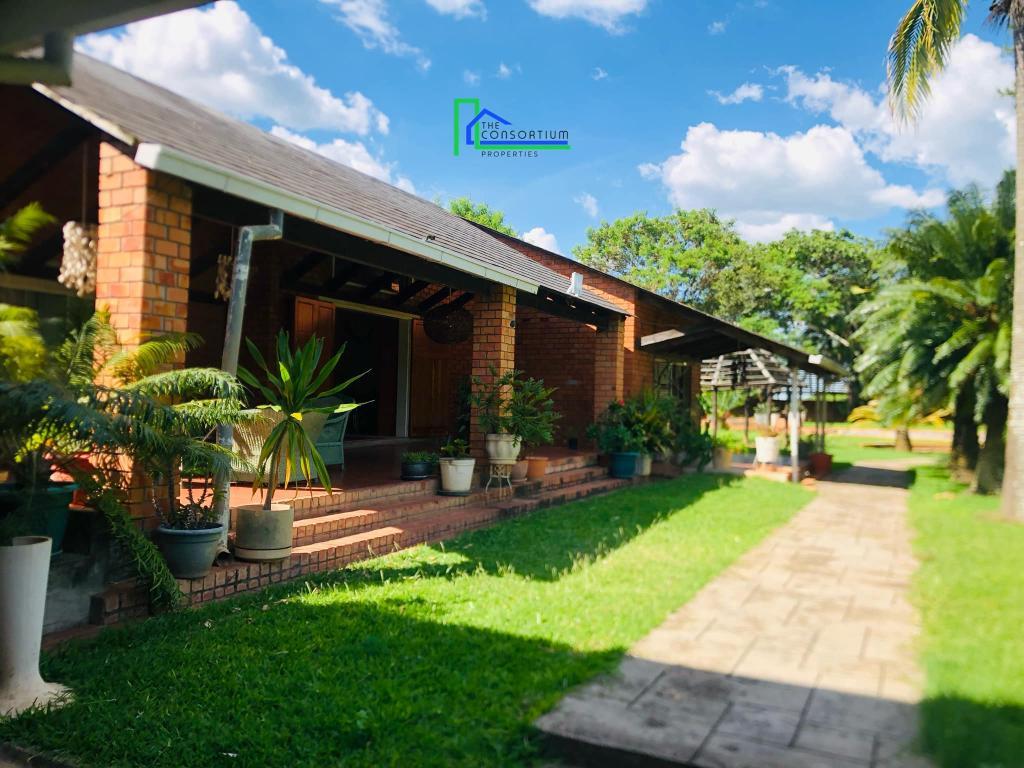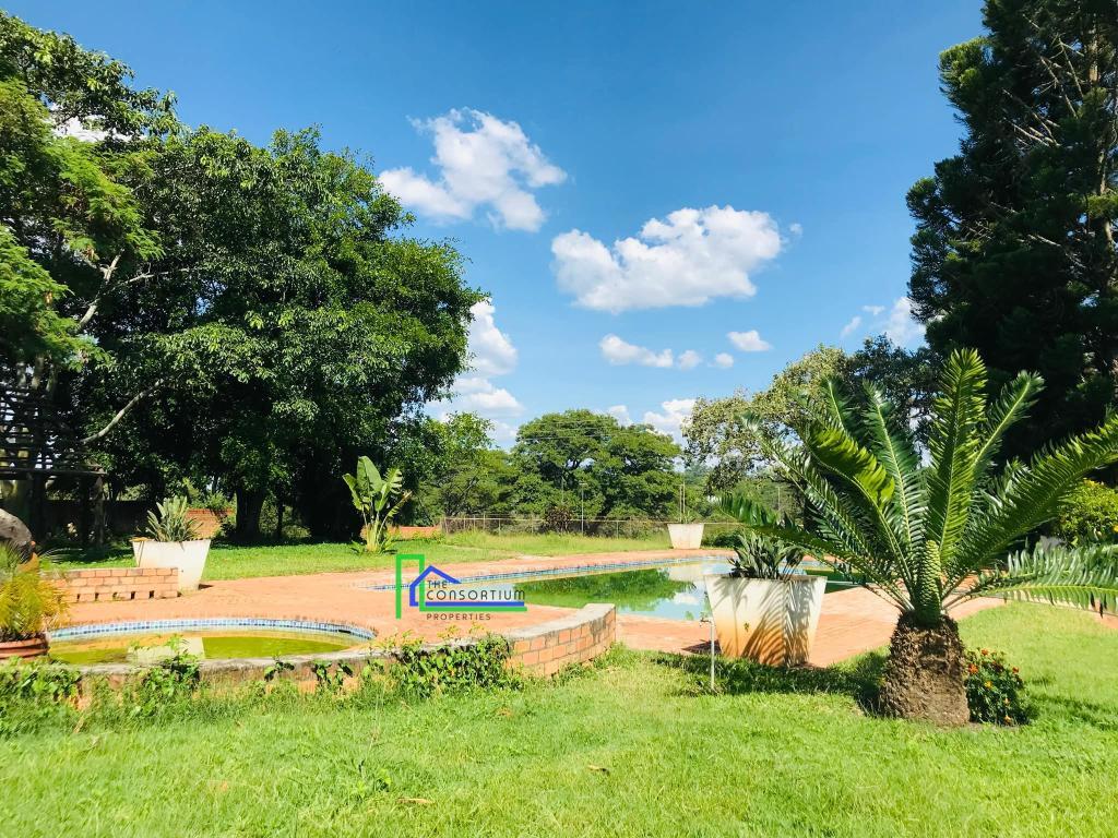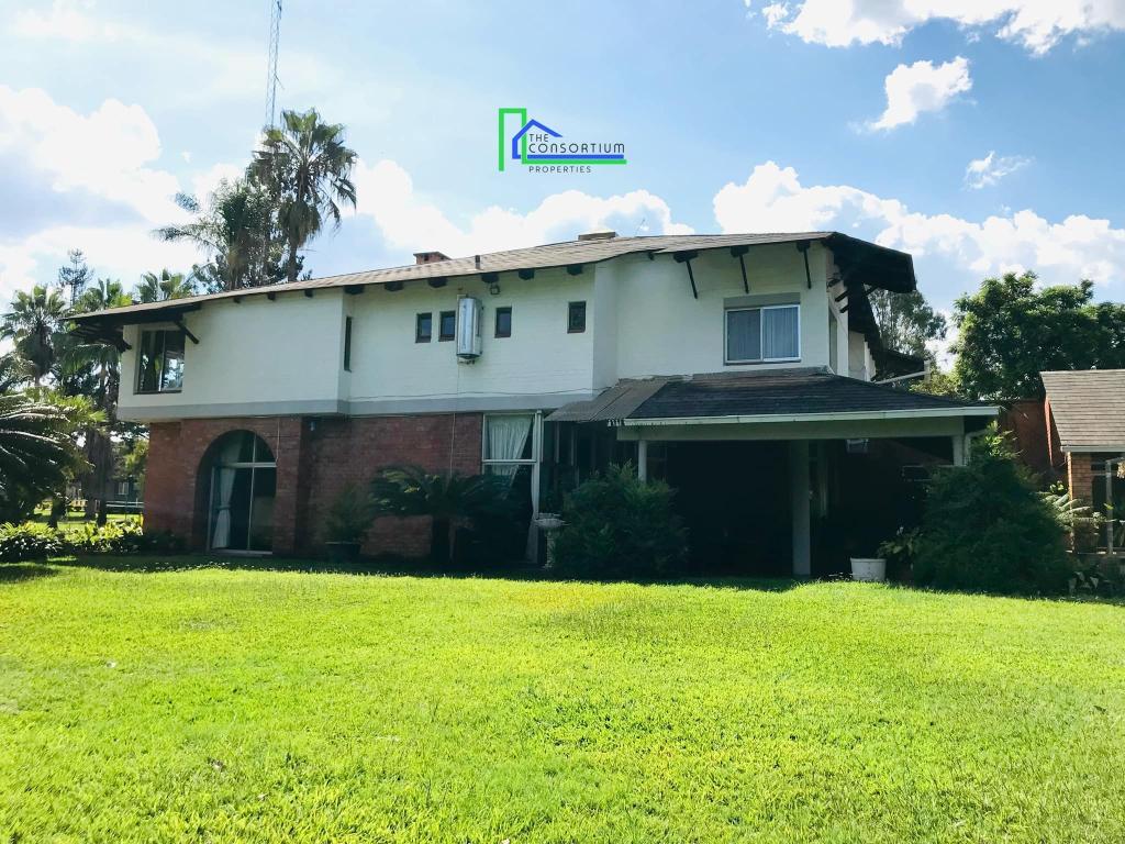 This house consists of a living and dining area, kitchen with built-in cabinets, a gas stove and oven, pantry, scullery, lounge/study area, 3 en suite guest bedrooms with built-in closets, showers and bathtubs, en suite master bedroom en suite with two walk-in closets (his and hers), shower and bathtub, one guest en-suite bedroom with a built-in closet with a shower and mini lounge area, pajama lounge, linen closet, guest toilet, olympic size swimming pool and garage. It also has a bachelors cottage that is self contained and has its own access gate.