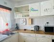 Well-equipped kitchen with built-in units, complete with cutlery, crockery, pots, toaster, kettle, stove, microwave, and a washing machine