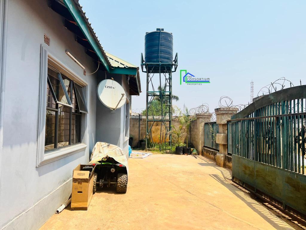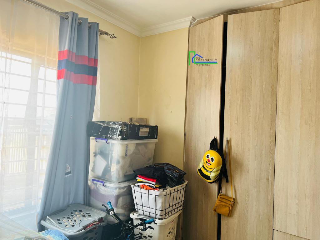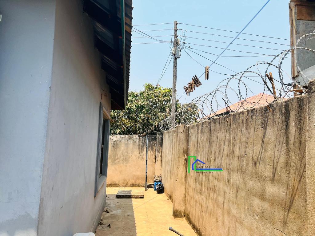 The flats have an open plan living room, dining, and kitchen fitted with built-in units with a heat extractor. It has a self contained master bedroom fitted with a built-in closet and a bath tub. The guest bedroom is fitted with built-in closets. It also has a guest bathroom with a shower enclosed in a shower cubicle. The house is well secured in a wall fence with a motorised gate. It also had a borehole with an overhead tank of approximately 5,000 litres.