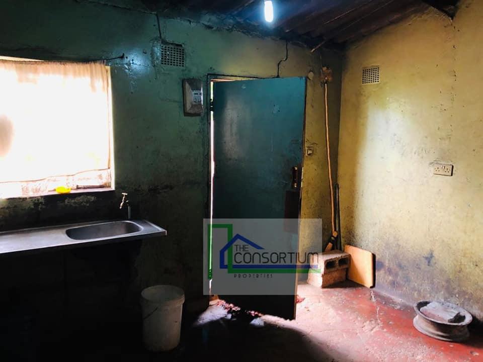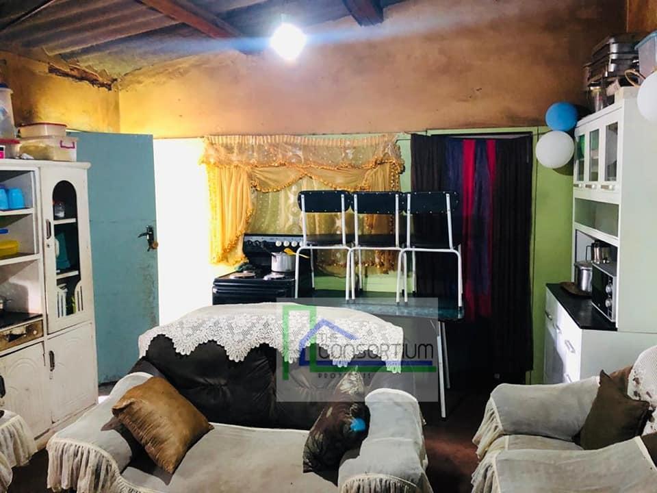 The property has a spacious yard measuring 25 meter by 30 meters. It is located on a gravel road a few meters from the tarred road.