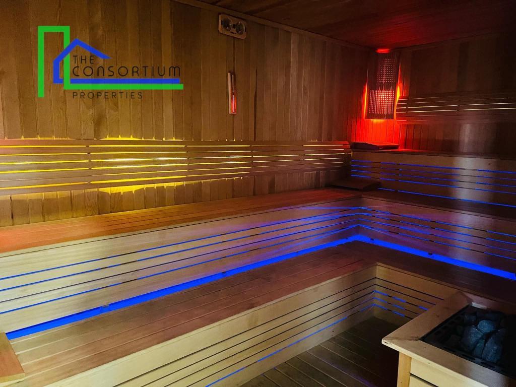 Gym, sauna, and steam room