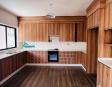 Kitchen with built-in stove and storage units